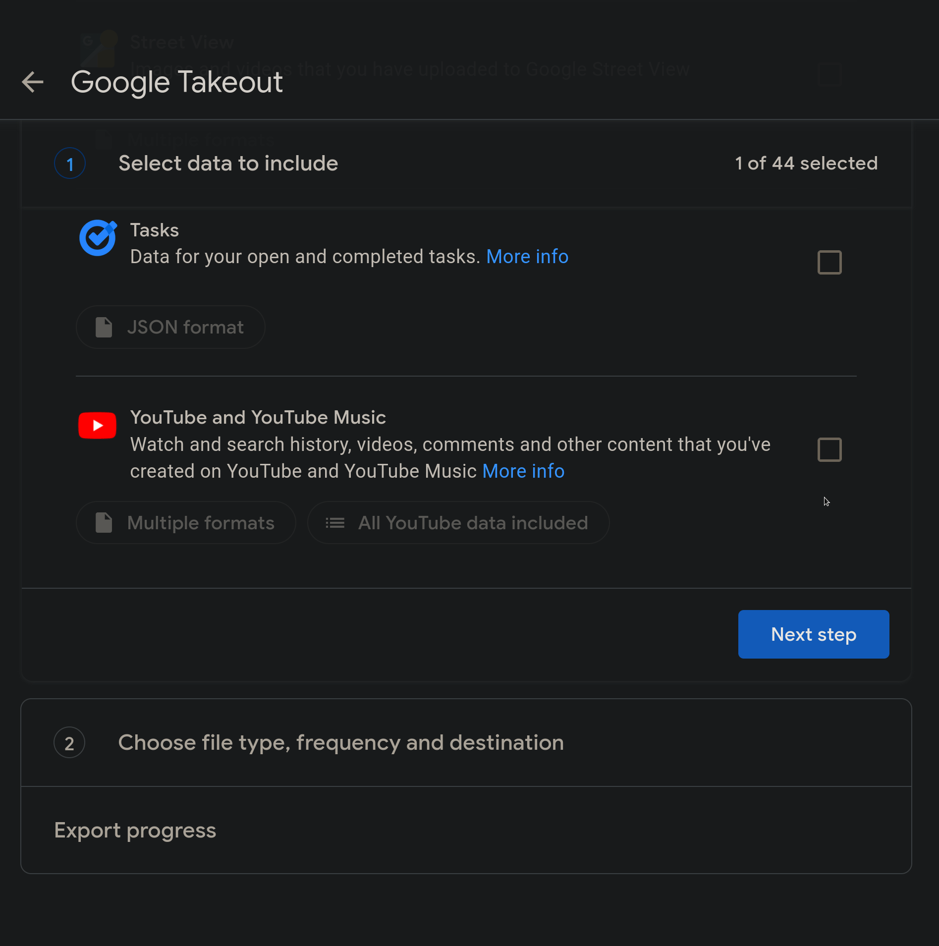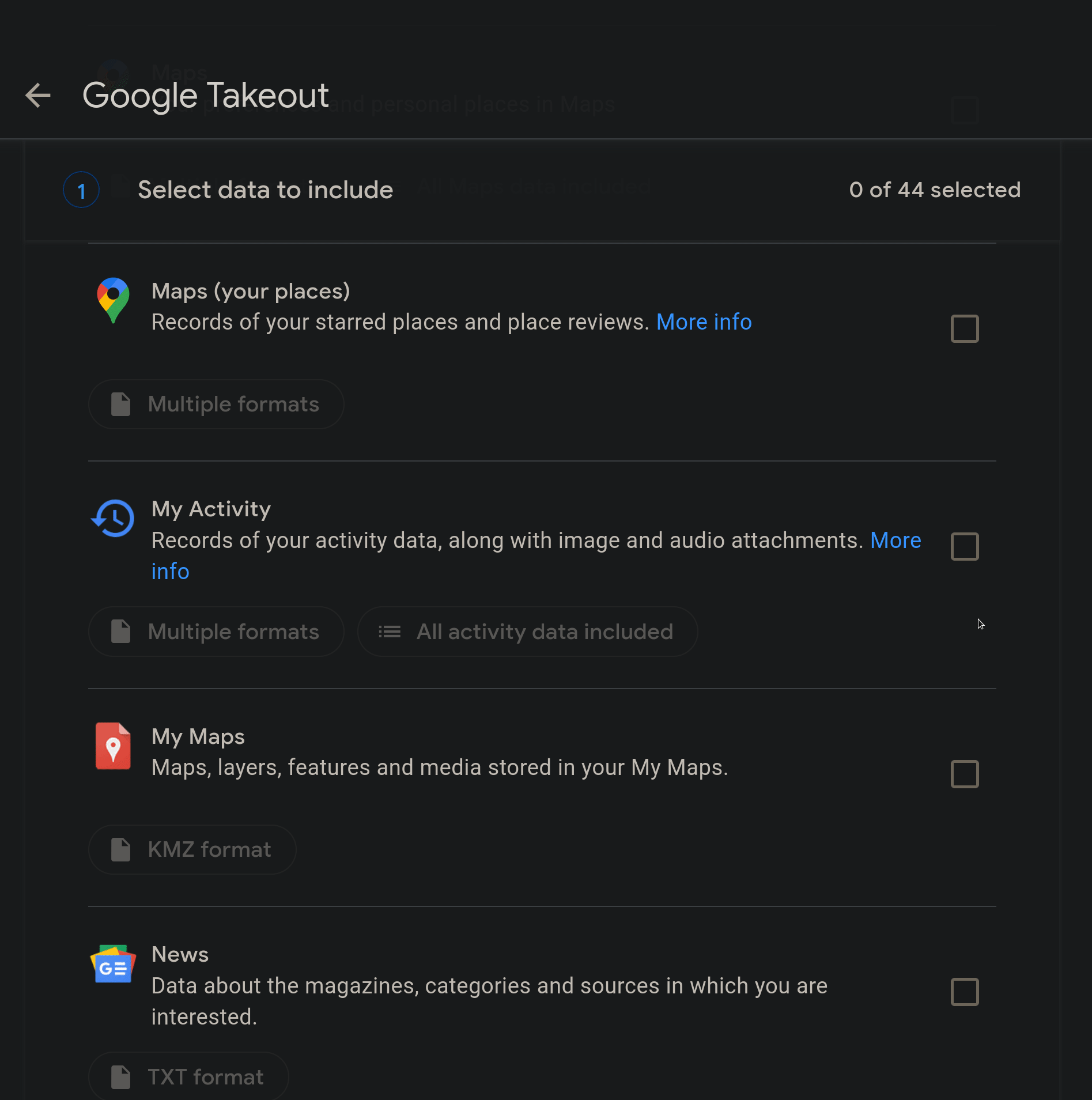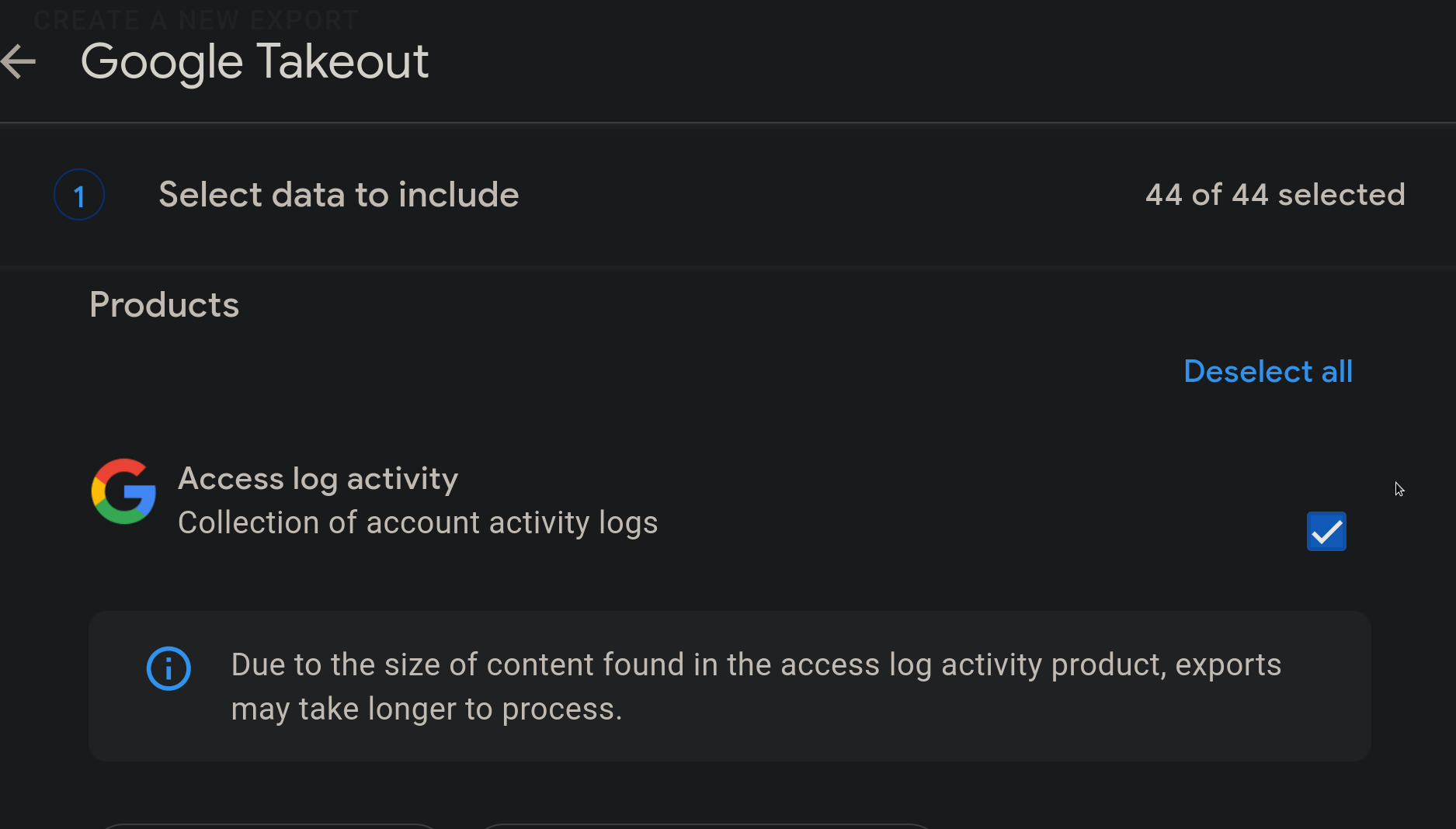 Scroll to the bottom of the page and export your data. Google should send you an email with a link in a few minutes.